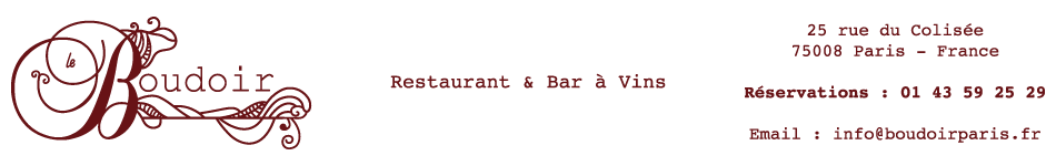 « La réussite du Boudoir étant avant tout une aventure humaine, j’ai su m’entourer d’une équipe volontaire, formée de femmes et d’hommes amoureux d’un métier où l’humilité, le don de soi et la volonté de faire découvrir demeureront à jamais les piliers d’un établissement de qualité. »
